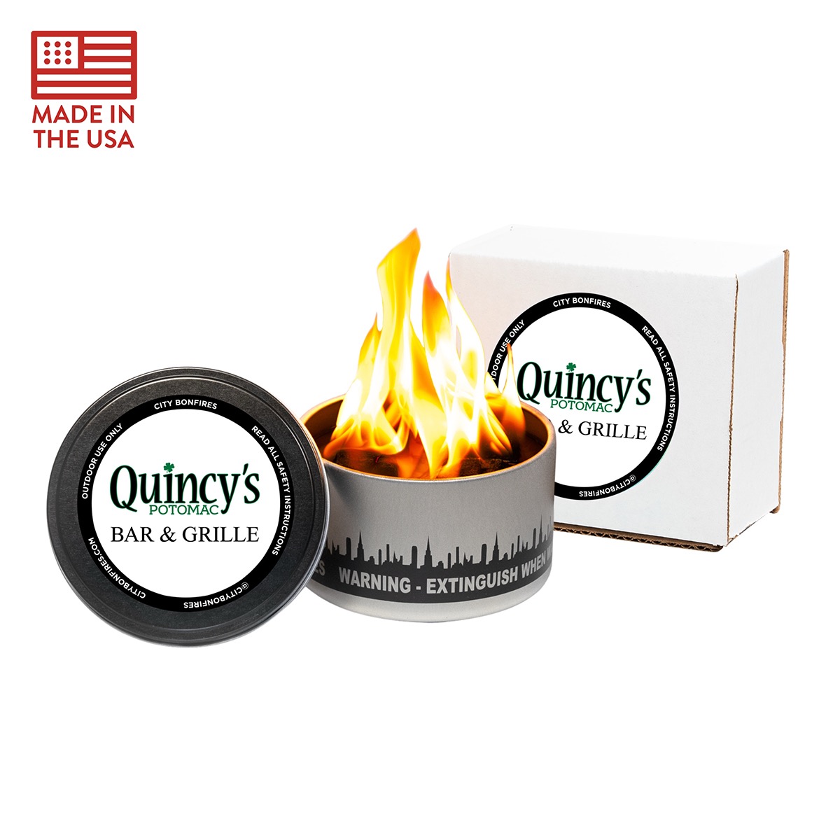 Original City Bonfires® Portable Fire Pits are hand made in the USA by a small business. Over 1 million sold, as seen on Good Morning America, People Magazine, & more. Compact, lightweight, environmentally friendly, non-toxic materials, reusable, & easy to light/extinguish. The perfect smokeless tabletop fire pits for experiential gifts that are fun and unique. Available with full-color custom lid and box labels or in bulk, with gift boxes. Burns 3-5 hrs. Outdoor use only. TSA approved.